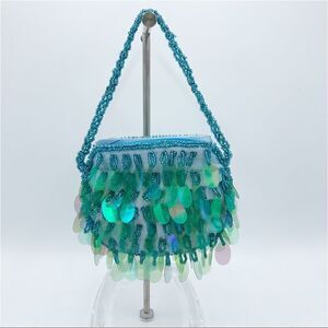 Girls Aqua Beaded and Sequin Coin Dress-Up Purse Bag