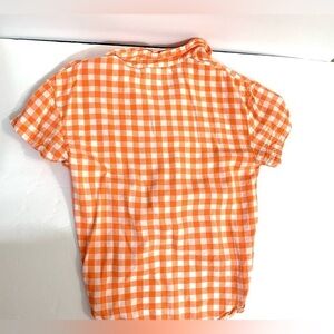 Girls Arizona Orange and White Checked Button Down Shirt Sz XXS (4-5).