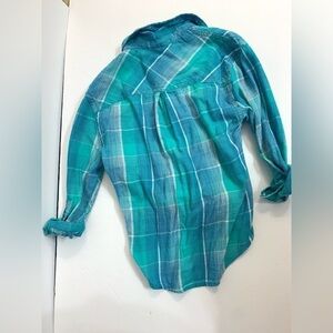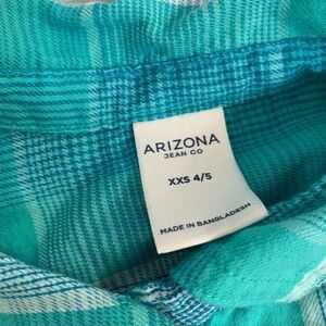 Girls Arizona Turquoise Tie Waist Button Down Plaid Shirt Sz XXS(4-5)