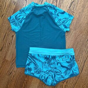 Girls Athleta rash guard and board shorts swimsuit size 14
