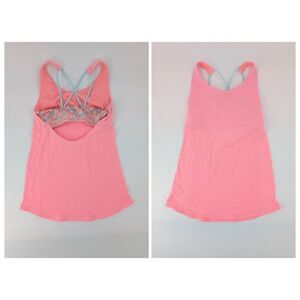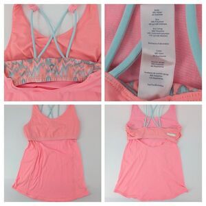 1- Lululemon Ivivva Pink Tank Top Shelf Bra Light Blue Straps