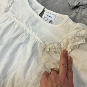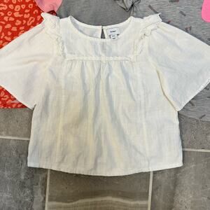 White Old Navy peasant blouse with ruffle crochet eyelet trim collar