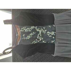 sage green with chiffon-like overlay and sequined top