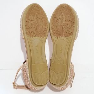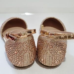 Girl's Ballet Strap Flat Formal Party Shoes Size 3 Golden Sparkly Embellished