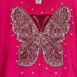 Girls Beautees size medium hot pink butterfly bling top