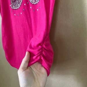 Girls Beautees cute hot pink butterfly bling top