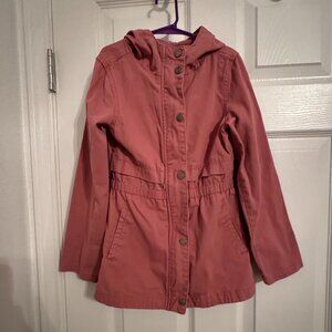 Girls Birch & Stone Hooded Utility Jacket Size 7 | Pink Cotton Lightweight Coat