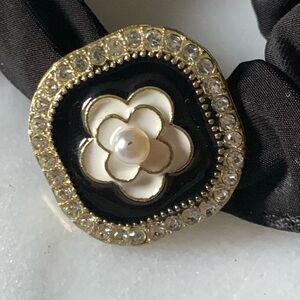 TAGS: camellia hair tie pearl flower charm elastic hair accessory black white enamel ponytail holder gift for her #camellia #flowerhairband #hairaccessory #quietluxuryfinds