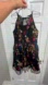 Elegant black dress with colorful embroidery in a floral patterns. Zips up in the back and has a charming peep-open back detail and a button closure on top. Lined underneath for comfort. This easy, elegant, and unique dress will sure to make her stand out at any event.
