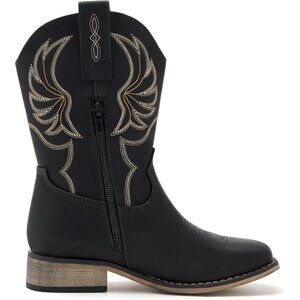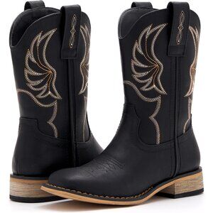 ⚡Girls Black Embroidered Cowgirl Boots Western Square Toe Mid Calf Riding Shoes