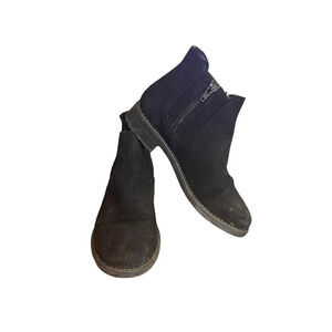 Girls Black Faux Suede Ankle Boots Booties Size 2 Kids Fall Winter Basic Plain