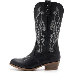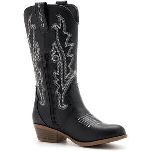 ⚡Girls Black Kids Western Boots Embroidered Cowgirl Boots Riding Shoes Mid Calf