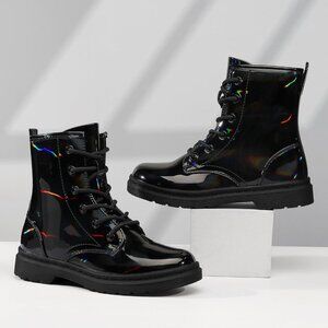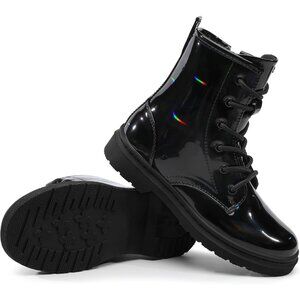 Girls Black Rubber Ankle Side Zipper Lace Up Stylish Comfort Glitter Boots