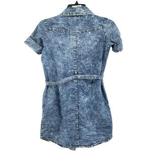 Girls Blue Acid Wash Distressed Button Front Belted Denim Shirt Dress Size 14/16