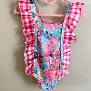 Girls Blue Floral One-Piece Swimsuit New with tags