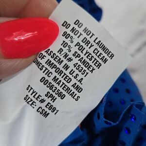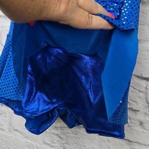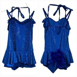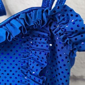 Blue Sequin Ruffle Biketard Sleeveless Leotard Dance Costume Child Small Feather