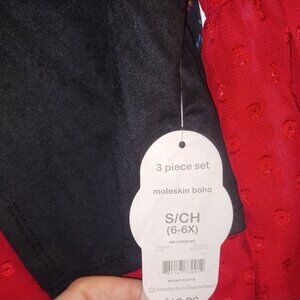 Girls Boho 3 Piece Outfit Fringed Vest, Top, Leggings 6x