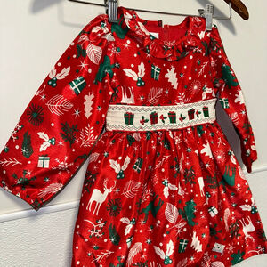 Girls Bonnie Jean Christmas Dress Size 2T Red Holiday Smocked Embroidered