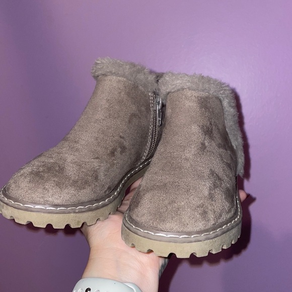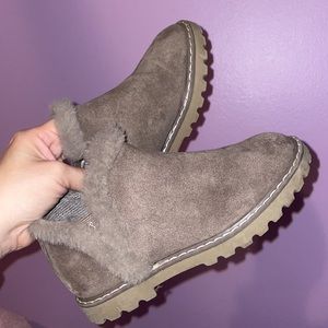 Gently worn fur trimmed grey booties