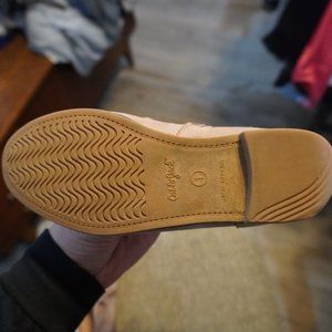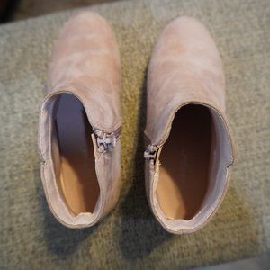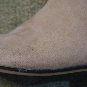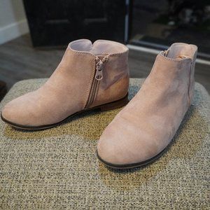 Gently used girls pink, faux sued boots / botties with a zipper so your little one can get her foot in and out easy! They are used, but in really good condition. The heels each do have some wear to them (see photos) and there are a few very small spots on the surface (see photos). Honestly, a good scrub might get it off! Otherwise, they are an adorable pair of ankle cropped boots / booties for your little girl!
