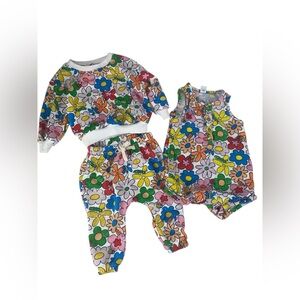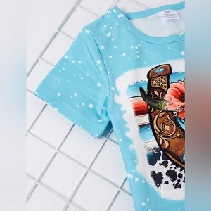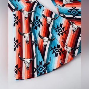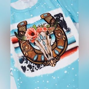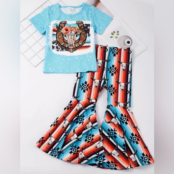 💙 NWT Pink Moose Boutique 💙 Western Floral Steer Skull Horseshoe graphic short sleeve top and matching graphic bell bottom flare pants.