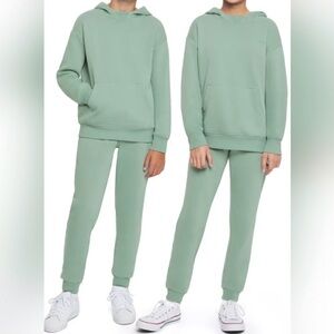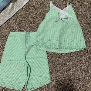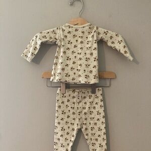 Buttery soft milk silk/95% polyester 5% spandex. True to size. Includes top & bell bottom pants.