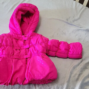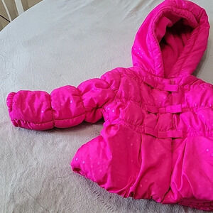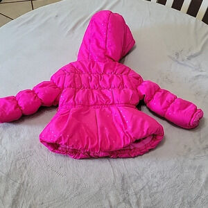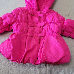 Girls Bright Pink Polka Dot Zip-Up with Velcro Overlay Warm Coat Size 18 Months