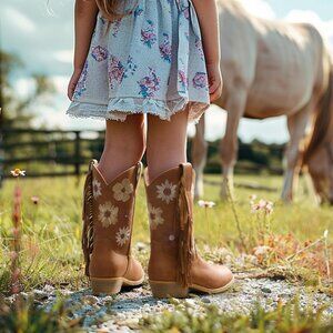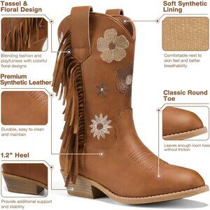 Dreamy Floral & Fringe Details: What makes the girls cowboy boots truly special is the intricate embroidery of colorful flowers and the row of playful tassels along the boot shaft. Both add a touch of girlish charm and a dash of western flair, making them a must-have for any aspiring cowgirl's wardrobe