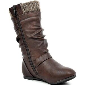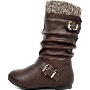 ⚡Girl's Brown Faux Fur Lined Knee High Winter Comfort Riding Boots For Toddler