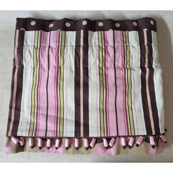 Girls Brown & Pink Striped Polka Dot Curtain Valance Tassels 13' Long Window
