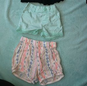 Boutique flower romper & pink skirt. 6 pairs of shorts with Cat & Jack & Garanimals brand. All size 2T.