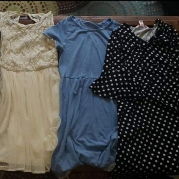 Girl's bundle with size 14 items: Black sweater, black leggings, long sleeved shirt, & 3 dresses.
