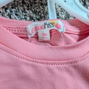 Adorable pink kids shirt featuring a colorful butterfly design with matching butterfly shorts.