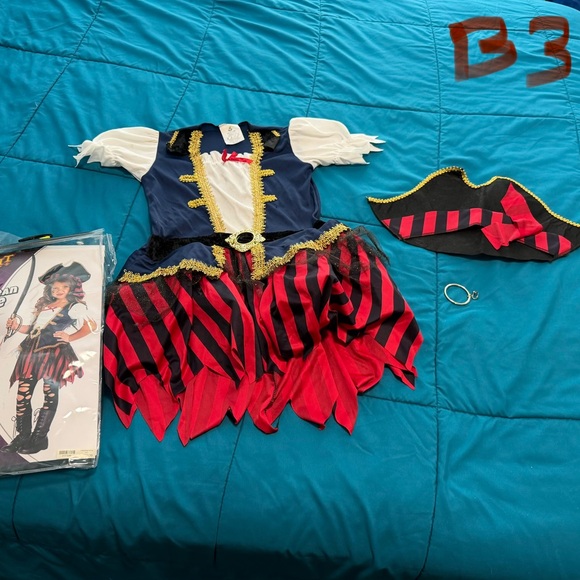Girls Caribbean pirate costume size medium 7-10. Comes as shown in the photos. I may have missed something minor. Ask any and all questions. No returns.