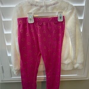 Girls' Casual Valentines Set - White Fuzzy top, pink pants, and gold accents