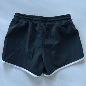 Girls Champion Athletic Shorts in Black. Super cute wardrobe staple. White trim. Elastic drawstring waistband. Built in underwear lining. No pockets. 100% polyester. Size Large (10/12). Excellent condition.