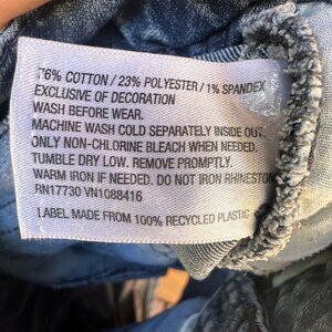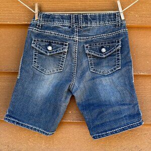 Girls Cherokee Denim Shorts L 10/12 With Rhinestone Back Pockets Adjustable Wais