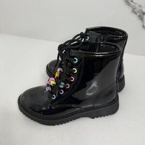 Girls Children’s Place Black Patent Leather Boot Side Zipper Fall Winter Sz 12