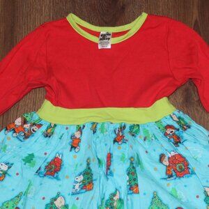 Girls Chris N Missy Peanuts Holiday Christmas Dress Red Blue Long Sleeve size 3T