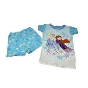 The Disney Frozen II Outfit is 100% cotton, and they have an elastic waist band. The shorts are 9 inches long.