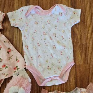 Laura Ashley 3-6M pink floral short sleeve bodysuit with pink trim