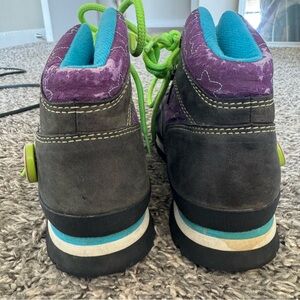 Hiking outdoors camp activity sports walking comfortable comfy colorful rainbow quirky Timberland boots lace up purple embroidery stars electric green neon statement unique quirky fun