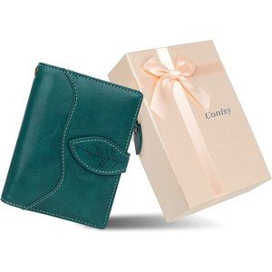 Girls Compact Bifold Leather Wallet with Wristlet RFID Blocking Womens Wallet