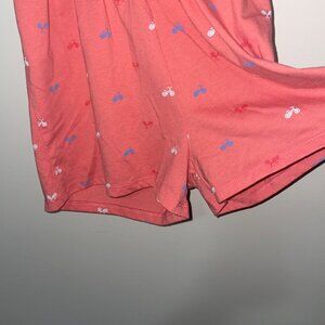 Girls Coral Bike-Print Romper With Flutter Sleeves & Button Keyhole Back