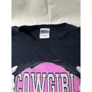 Design: Crewneck, short sleeves, bold "Cowgirl Up" graphic