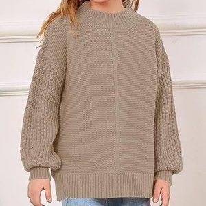 Feature: Basic fall winter sweaters, mock neck,drop shoulder, long sleeve, ribbed knit, side slit, so flattering for your wearing. Chunky knit tops for kids aged 5-14