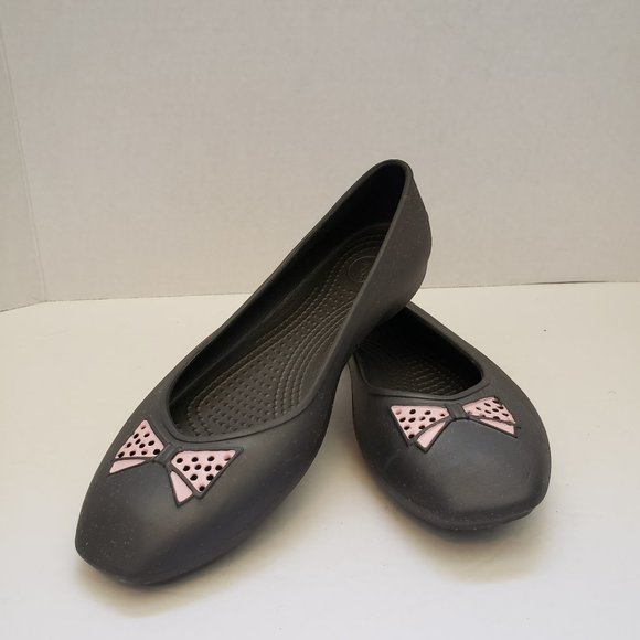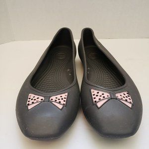 Girls Crocs Ballet Flats Grey with Pink Bow Excellent Condition