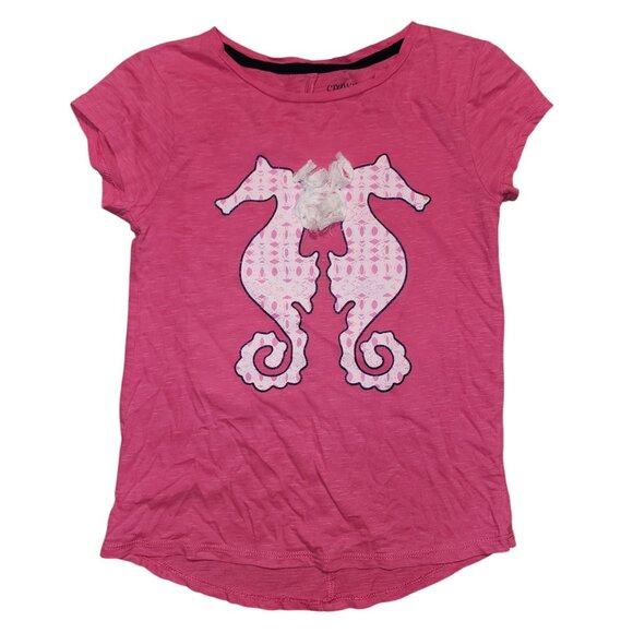 You are looking at a girl's Crown & Ivy Kids pink seahorse tee.