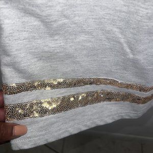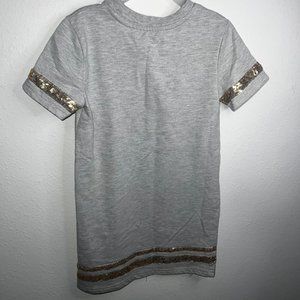 Girls' DKNY gray t-shirt dress with gold lettering and trim size small (7)