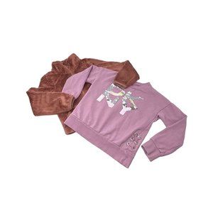 This stylish combo includes a Girl's DNKY Mauve Sweatshirt with sequined front detail and a Tommy Bahama Light Rust Faux Fur Light Weight Jacket. Both in size 5, they offer comfort and fashion in one package.